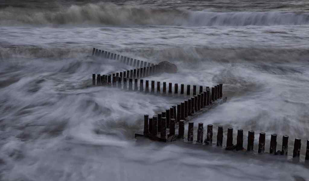 Top: One of the zigzag groynes in early evening sun; Bottom: The other structure shot with a filter to blur the incoming tide.