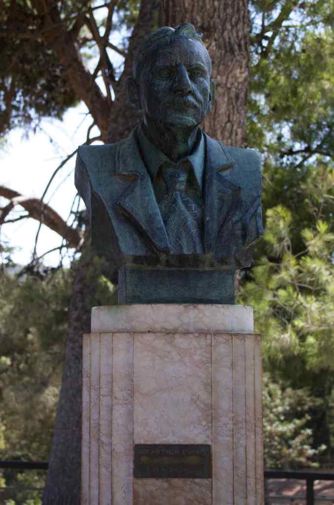 Excavation of the site was first begun in 1877 by Minos Kalokarairinos, a Cretan businessman and amateur archeologist. He was ordered to stop after about 3 years by the Turkish authorities, who controlled the island at that time. In 1900 Englishman Sir Arthur Evans began a much longer (about 35 years) and more extensive excavation which revealed many famous artefacts. Evans was credited with discovering the Minoan civilisation but his restoration work on the site was controversial, mainly for his inaccurate and irreversible re-constructions of many of the architectural remains, artefacts and paintings.