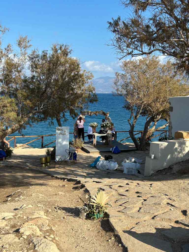 We were told that the chapel is often used for weddings . For a fee you could have your very own “Mama Mia” (that is the film, not an Abba Tribute band) style wedding spectacular in your own Greek chapel. It was lovely location, but a wedding………?