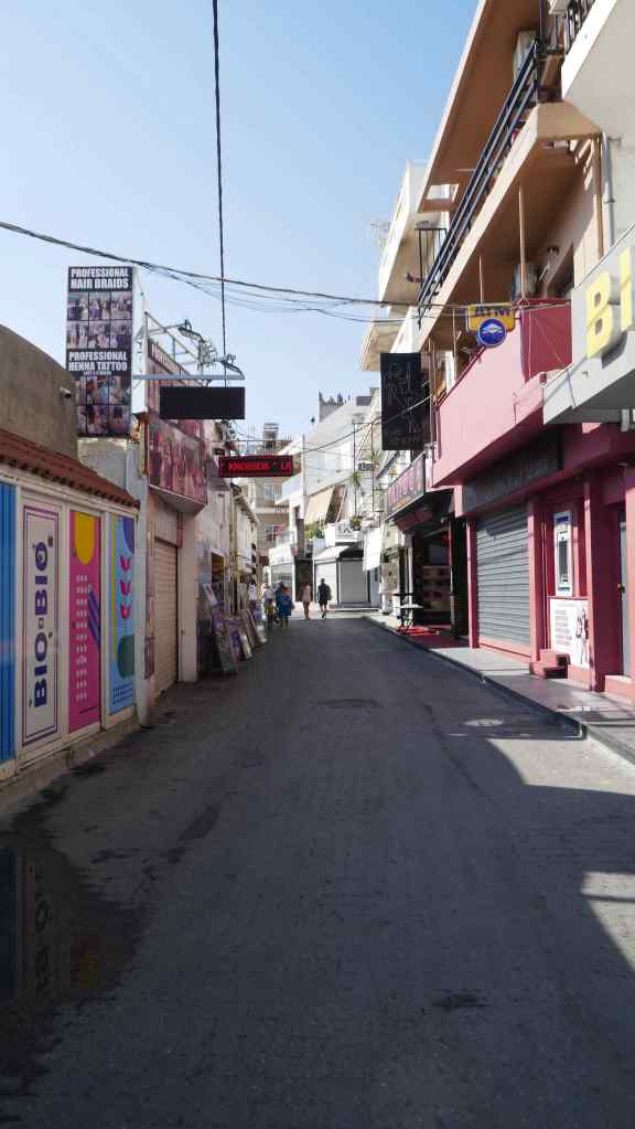 We were based close to the town of Hersonissos, which has evolved over the years into a bustling, popular holiday resort with many bars, cafes and clubs lining a long sea front harbour area. We were about a 15 minute walk from the centre but did not bother with the night-life, or much of the daytime life, come to think of it.
