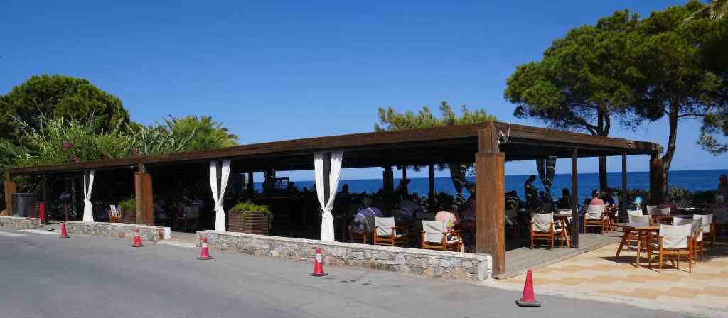 Above: Three images of the seafront cafes, shops and life in Hersonissos. The other side of the cabins on the right is the harbour wall!