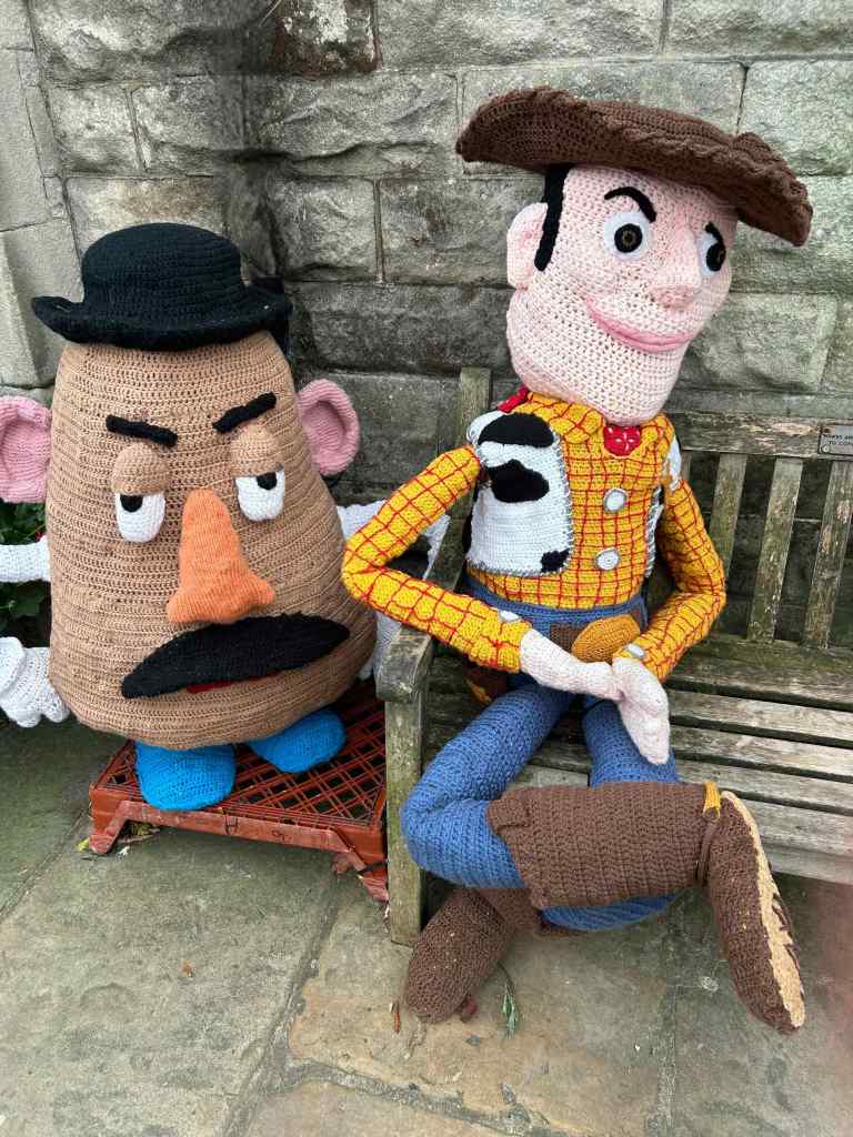 Knitted versions of Wallace and Grommit on display in Hawes.