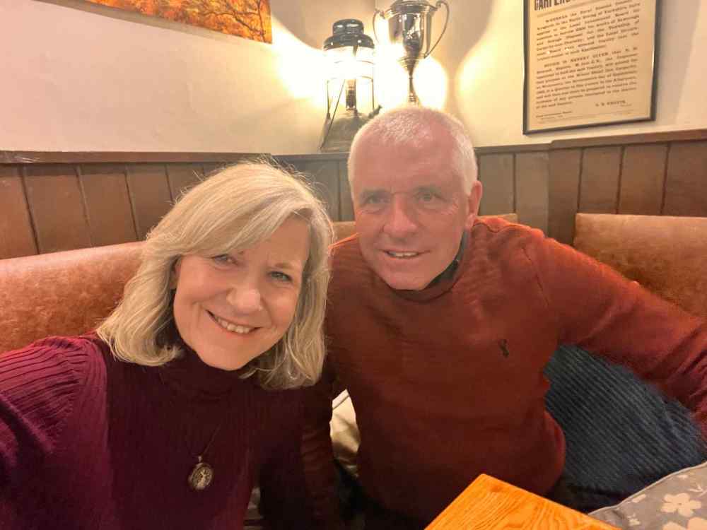 Us with friends Geoff and June out on the hill.