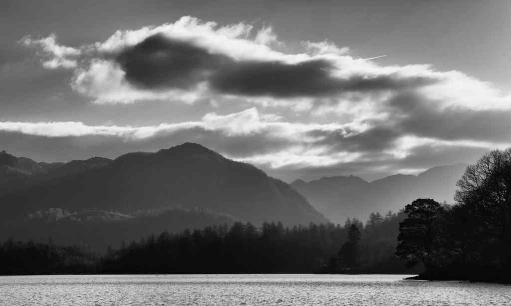South west end of Derwentwater – a moody mono.